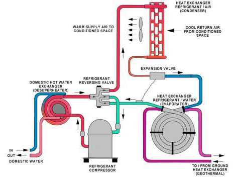 Water to water heat pump will be equipped with a desuperheater and an integrated circulating pump that can provide Supplemental Domestic hot Water (SDW). This is done by stripping heat from the superheated gas leaving the compressor. In addition on heating demand the central plant will operate dedicated water to water heat pump in heating mode to increase tank temperature to 120oF.