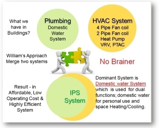 Integrated Piping System IPSTM is a TWO in ONE mechanical system uses domestic water as thermal refrigerant which provides dual function – Domestic water for personal use and Space heating & cooling. The core of IPSTM & its energy efficiency is central plant advantage, Williams IPS fan coils & TWO IN ONE distribution piping system where every gallon of water used by the resident saves energy.