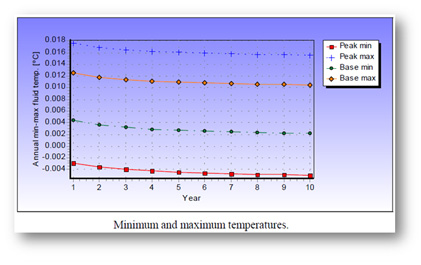 When a building’s cooling load differs significantly from its heating load, the earth connection will always have either a significant net energy gain or a significant energy loss. This is what is called “thermal imbalance.” In the first case (energy gain), the average ground temperature may start warming up over the years if the Geothermal Reservoir was not properly designed (e.g., ground with low water movement and closely packed boreholes). In the second case, the average ground temperature will gradually fall. When designing a Geothermal Reservoir X, thermal imbalance must always be considered in the final design to insure that long-term performances will be maintained.